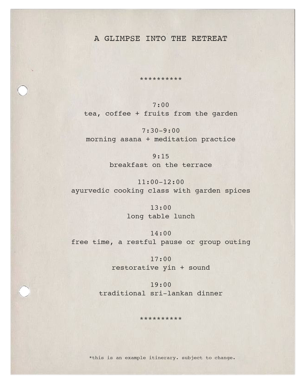 over 6 nights and 7 days, your hosts, Mai and Tamara will guide you through a fluid rhythm of yoga, sound, breathwork and creative workshops — an invitation for a spring reset, curated to return you home with a nourished body, open heart and a spiritual reset like no other.